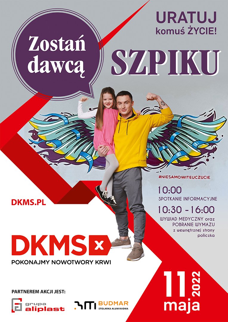 Każdego dnia działamy i pomagamy! Dzień Dawcy Szpiku w firmie Aliplast! 11 maja 2022 r. (środa) na terenie firmy Aliplast odbędzie się akcja rejestracji potencjalnych dawców komórek macierzystych krwi lub szpiku dla każdego pacjenta, który zostanie zakwalifikowany do przeszczepienia. Naszą akcję realizujemy wspólnie z firmą Budmar.
