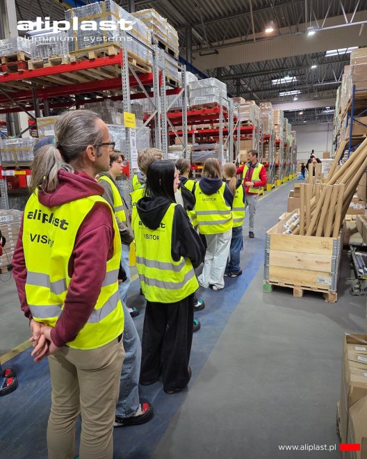 Oczywiście nie było to zwykłe zwiedzanie. Uczniowie w ramach projektu mają do przygotowania kampanię promocyjną jednego z produktów z oferty Aliplast. Zadanie nie jest proste - muszą stworzyć spójny projekt reklamowy na portale społecznościowe, od pomysłu, przez kreację, aż po realizację. Była to zatem świetan okazja do przyjrzenia się poszczególnym aspektom produkcji oraz zadawania pytań. Dodatkowo uczniowie będą w stałym kontakcie z naszym działem marketingu, który będzie wspierał ich od strony merytorycznej i przekazywał swoją wiedzę w tym zakresie.
