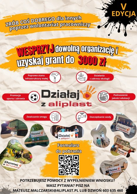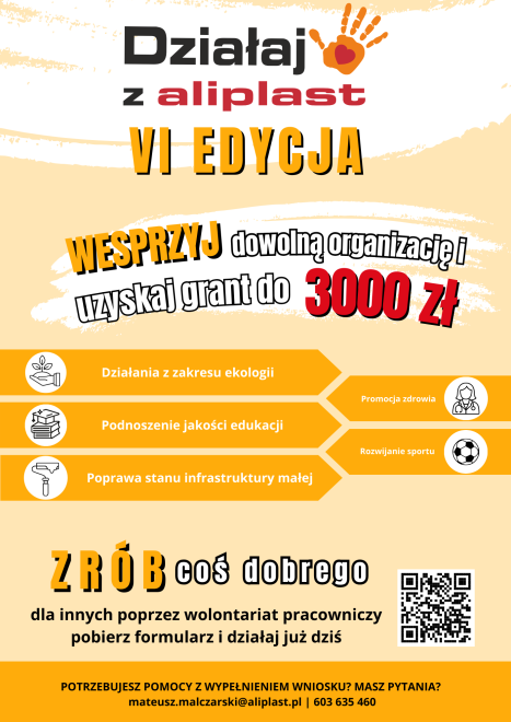 Wnioski można składać osobiście w dziale CSR lub poprzez e-mail: mateusz.malczarski@aliplast.pl