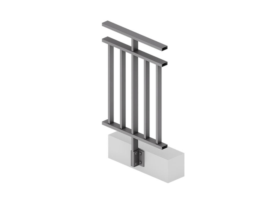 - profile balustrady wykonane z tłoczonego aluminium malowanego proszkowo, elementy złączne wykonane są ze stali nierdzewnej, dzięki czemu nie ma ryzyka wystąpienia korozji w żadnym z elementów balustrady